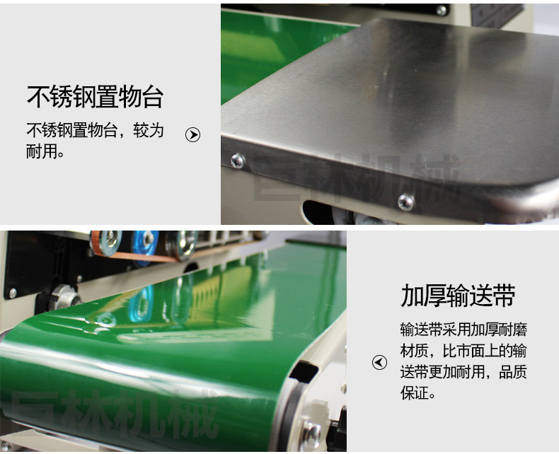 該系列封口機采用電子恒溫控制和無級調(diào)速傳動系統(tǒng),具有自動連續(xù)封口、印刷產(chǎn)品標(biāo)簽、一次完成之功能,并可臥、立落地使用。用于單層薄膜及各種復(fù)合薄膜的封口、制袋,廣泛應(yīng)用在食品、制藥、種子、化工、輕工等部門。